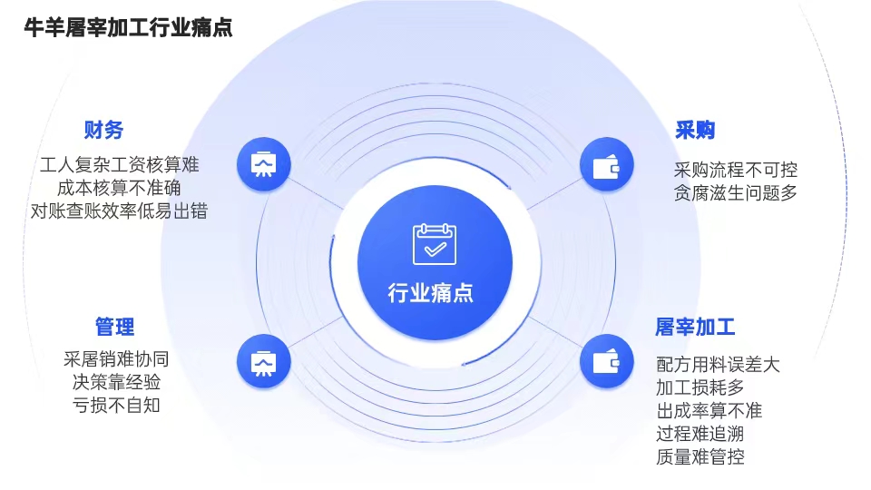 通過云存儲、物聯(lián)網(wǎng)、工業(yè)互聯(lián)網(wǎng)等技術(shù),對牛羊采購、屠宰分割、深加工、倉儲配送所有環(huán)節(jié)進行信息化升級。全流程全鏈路一站式實時管控,可實現(xiàn)數(shù)據(jù)共享跨部門協(xié)作,幫助企業(yè)實現(xiàn)精益生產(chǎn),有效降本增效,實現(xiàn)收益最大化!